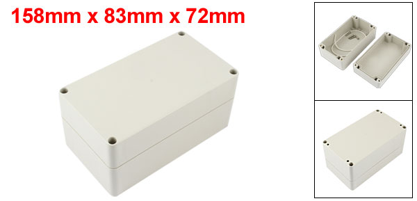 Product Name Junction Box Mounted Type Surface Mounted Mount Hole Dia 4mm /1.6" Box Size 158mm x 83mm x 72mm/6.2" x 3.2" x 2.8"(L*W*H) Material Plastic Color Light Gray Net Weight 201g Package 1 x Junction Box
