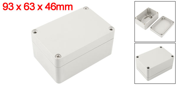 Product Name Junction Box Mounted Type Surface Mounted Mount Hole Dia 4mm Box Size 93mm x 63mm x 46mm/3.7" x 2.5" x 1.8"(L*W*H) Material Plastic Color Light Gray Net Weight 93g Package 1 x Junction Box