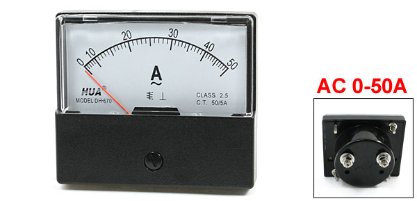 Product Name Analog Ammeter Model DH-670 Measuring Current Range AC 0-50A Accuracy Class 2.5 Total Size 7 x 6 x 4.5cm/2.8" x 2.4" x 1.8"(L*W*T) Thread Dia. 5mm/ 0.2", 3mm/0.12"