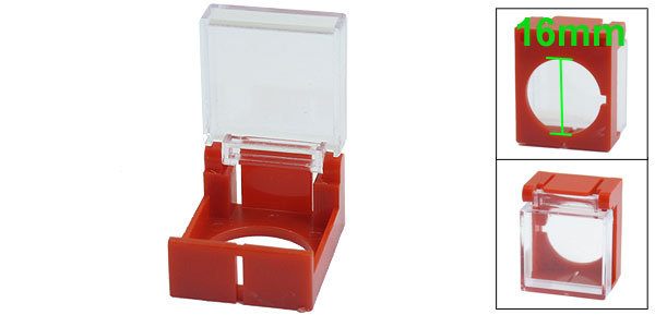 Item Name Switch Protector Use for Push Button Switch Color Red, Clear Material Plastic Hole Dia. 16mm/0.63" Total Size 25 x 25 x 15mm/ 1" x 1" x 0.6"(L*W*H) Weight 3g Package Content 1 x Push Button Switch Protector - Reviews