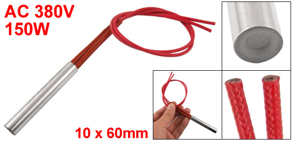 Product Name Cartridge Heater Material Stainless Steel, PVC, Nylon Rated Voltage AC 380V Power 150W Heater Size (Approx.) 10 x 60mm/ 0.39'' x 2.3'' (D * L)