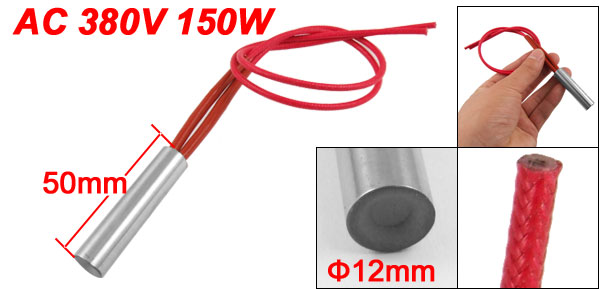 Product Name Cartridge Heater Material Stainless Steel, PVC, Nylon Rated Voltage AC 380V Power 150W Heater Size (Approx.) 12 x 50mm/ 0.47'' x 2'' (D * L)