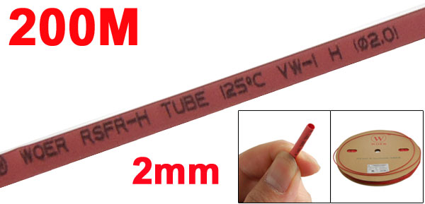 Product Name Heat Shrinkable Tube Material Polyolefin Rated Voltage 600V Temperature Level 125°C Flammability VW-1 Diameter 2.0mm / 0.078" (Before Shrinking) 1.0mm / 0.039"(After Shrinking) Shrink Ratio 2:1 Length (Approx.) 200m / 7874" Package Roll Size 45 x 2.7cm / 17.7" x 1"(D * H) Color Red Weight 710g Package Content 1 x Heat Shrinkable Tube - Reviews
