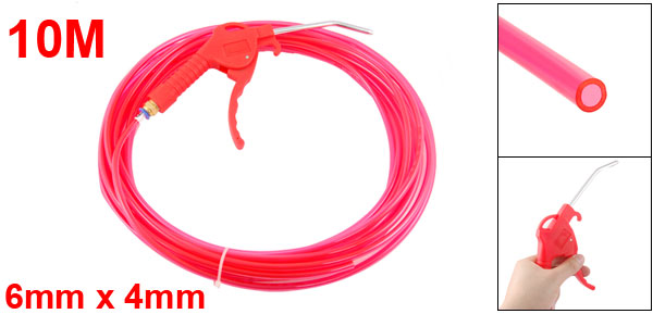 Red 32.8Ft 10M 6mm x 4mm PU Polyurethane Hose Pipe Tube w Air Blow Gun