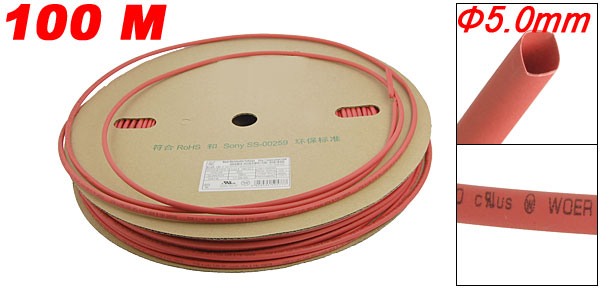 Red 5mm x 100 Meters Sleeves Heat Shrink Tubes 2:1 Ratio
