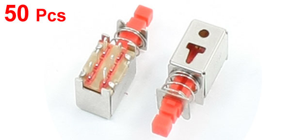 DetailsRed 6 Pin Terminals Momentary Action Tactile Switch 25x13x8mm 50 PCS  Product Name Tact Switch Contact Type Momentary Action Dimension 25 x 13 x 8mm/ 1" x 0.51" x 0.31"(L*W*H) Pin Number 6 Material Plastic, Metal Color Silver Tone, Red Weight 120g Package Content 50(±2%) Pcsx Tact Switch