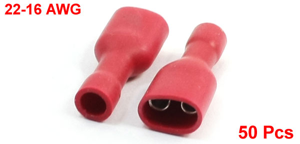 Red 7mm Fully Insulated Push On Car Radio Terminal 22-16AWG 50 Pcs