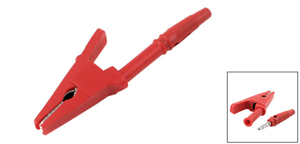 Product Name Alligator Clip Material Plastic, Metal Color Red Fit Cable Diameter 4mm/ 0.16" Banana Size 45 x 10mm/1.8" x 0.4"(L*D) Alligator Clip Size 85x 35 x 10mm/3,3 x1.4"x 0.4"(L*W*T) Jaw Open Width 20mm / 0.78"(Max.) Weight 28g Package Content 1 x Alligator Clip
