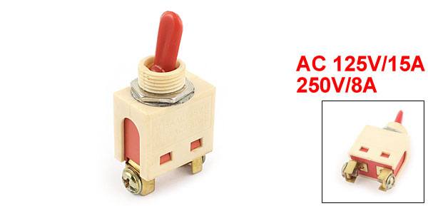 Red Beige On/Off SPST Two Screw Terminals Toggle Switch AC 125V/15A 250V/8A