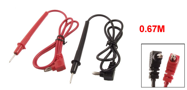 Product Name Multimeters Probe Lead Connector Type Banana Plugs, Testing Pin Material (External) Plastic, Metal Voltage 1000V Plug Diameter(Max.) 4.8mm/0.2" Probe Length 14mm/0.55" Probe Tip Dia. 1.1mm/0.04" Cable Length 0.67M / 26.4" Color Black, Red Weight 26g Package Content 1 Pair x Multimeters Probe Lead - Reviews