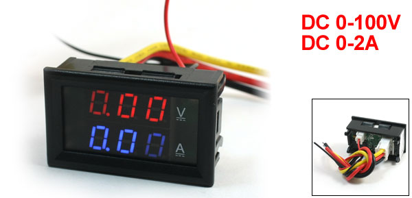 Red Blue LED 7-Segment 3-Bit Dual-Display Ammeter Voltmeter DC 100V 2A
