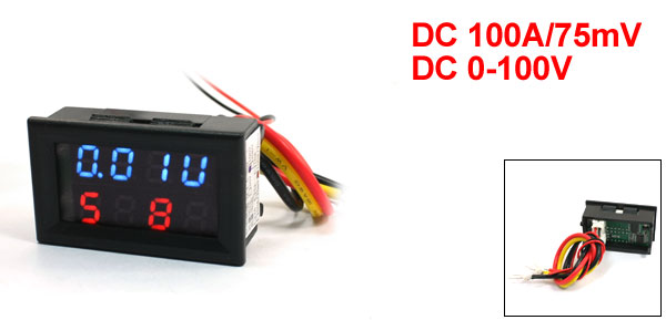 Red Blue LED Digital Display Voltmeter Ammeter DC 0-100V 100A/75mV 5Wire