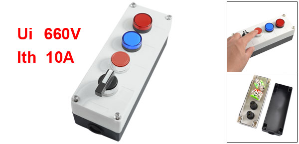 Product Name Push Button Station Ui 660V Ith 10A IEC 337 Signal Lamp Voltage AC/DC110V, <=20mA Material Plastic, Metal Overall Size(not include the button) 19.3 x 7 x 6.4cm/7.6'' x 2.7'' x 2.5'' (L*W*H) Overall Height 9cm / 3.5" Color As Picture Shown Net Weight 308g Package Content 1 x Push Button Station - Reviews