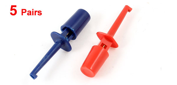 Red Blue Plastic Electrical Testing Lead Wire Hook Clip Connector 5 Pairs