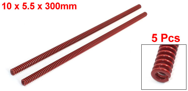 Product Name Compression Spring Type US Standard Size 10 x 5.5 x 300mm/0.39" x 0.22" x 11.8"(OD* Inner Dia * L) Materials Chromium Alloy Color Red Net Weight 237g Package Content 5 x Compression Spring - Reviews
