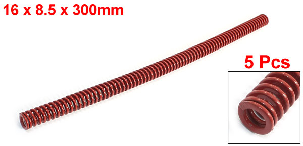 Product Name Compression Spring Type US Standard Size 16 x 8.5 x 300mm/0.63" x 0.335" x 11.8"(OD* Inner Dia * L) Materials Chromium Alloy Color Red Net Weight 509g Package Content 5 x Compression Spring - Reviews