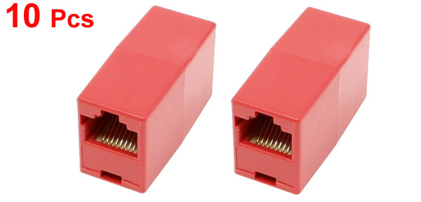 Red Double Connector RJ45 F/F Modular Network Inline Coupler Adapter 10 Pcs
