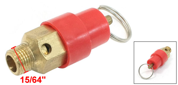 Product Name Pressure Relief Valve Material Metal Color Gold Tone, Red Thread Size 15/64" Keyring Dia. 1.7cm/ 0.67" Valve Total Size 4.3 x 1.7cm / 1.7" x 0.67" (L*Max.D) Weight 23g Package Content 1 x Pressure Relief Valve - Reviews