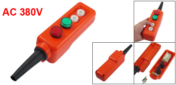 Product Name Hoist Pushbutton Switch Model No. COB COJ2043 Push Buttons Red/Green LED Signal Lamp, Up, Down Lamp Voltage AC 380V Main Body Size 20 x 5.8 x 6.5cm / 7.9" x 2.3" x 2.6"(L*W*H) Insulating Tube Length 10.2cm / 4" Fit Cable Diameter 1.1cm / 0.43" External Material Plastic, Rubber Color Orange Red, Black Net Weight 306g Package Content 1 x Hoist Pushbutton Switch - Reviews