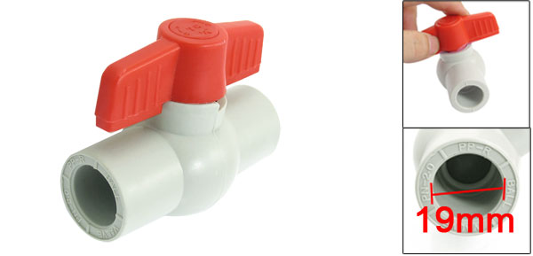 Product Name Ball Valve Ends Type Slip x Slip Slip End Size 19mm x 19mm Handle Size 72 x 24mm/ 2.8" x 0.9" (L*Max.W) Overall Size (Approx.) 76 x 38 x 63mm/ 3" x 1.5" x 2.5" (L*W*H) Color Red, Gray Material PPR Net Weight 54g Package 1 x Ball Valve - Reviews