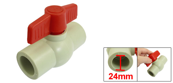 Product Name Ball Valve Ends Type 3/4" Slip x 3/4" Slip Slip End Size 24mm x 24mm Handle Size 78 x 26mm/ 3.1" x 1" (L*Max.W) Overall Size (Approx.) 88 x 46 x 75mm/ 3.5" x 1.8" x 3" (L*W*H) Color Red, Gray Material PPR Net Weight 87g Package 1 x Ball Valve - Reviews