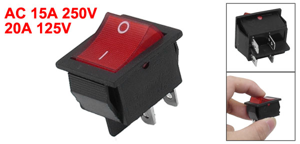 Terminals 4 Pins Position On-Off Lamp Color Red Rated Voltage AC 15A 250V, 20A 125V Overall Size 31 x 25 x 33mm / 1.2" x 1" x 1.3" (L*W*H) Mounting Size 27 x 21mm / 1.1" x 0.8" (L*W) Color Black, Red Material Plastic, Metal Total Weight 12g Package Content 1 x Rocker Switches  - Reviews