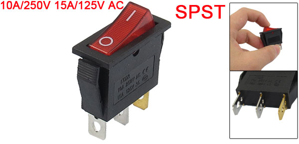 Terminals 3 Pins Position On-Off Lamp Color Red Rated Voltage AC 10A 250V, AC 15A 125V Overall Size 30 x 14 x 38mm / 1.2" x 0.6" x 1.5" (L*W*H) Mounting Size 27 x 9.5mm / 1.1" x 0.37" (L*W) Color Black, Red Material Plastic, Metal Total Weight 7g Package Content 1 x Rocker Switch - Reviews