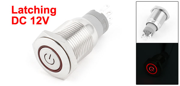 Item Name Push Button Switch Action Type Latching Type LED Type Angel Eye Head Shape Flat Head Contact 1NO 1NC, SPDT Switch Rating AC 250V, 3A Lamp Voltage DC 12V LED Color Red Pin Number 5 Thread Diameter 16mm/0.63" Total Size 38 x 19mm/1.5" x 0.75"(L*Max.W) Material Metal, Plastic, Electric Parts Housing Color Silver Tone, Red Net Weight 15g Package Content 1 x Push Button Switch - Reviews