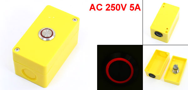Product Name Push Button Station Action Type Latching Action Contact Type SPDT 1NO 1NC Working Voltage & Current 5A 250VAC Max. Withstand Current 19A Light Voltage 24V Light Color Red Button Dia 2.3cm/0.9" Overall Size 9 x 5 x 5cm/3.5" x 2" x 2"(L*W*H) Wire Hole Dia 20mm/0.78" Mounting Hole Dia 4mm/0.16" Mount Hole Distance 60mm x 35mm/2.4" x 1.4"(L*W) Material Plastic, Metal Color Red, Yellow, Silver Tone Net Weight 72g Package Content 1 x Push Button Station - Reviews