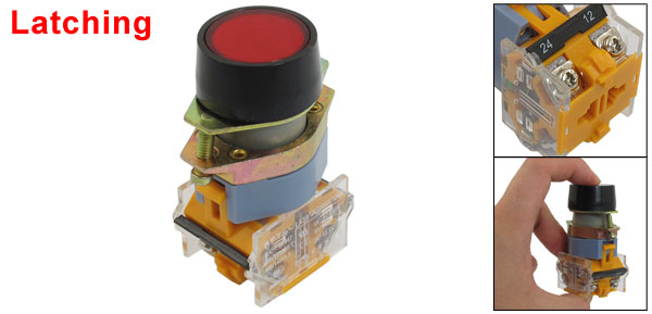 Product Name Push Button Switch Contact Type 1NO 1NC (DPST) Action Type Latching Button Type Flat Button Ith 10A Ui 660V Terminal Quantity 4 Panel Cutout Diameter 22mm / 0.87"(7/8") Fit Panel Thickness (Max) 7.5mm / 0.3"(Adjustable) Mounting Thread Hole Diameter 4mm / 0.16" Hole Spacing 35mm / 1.38"(Center to Center) Button Diameter 24mm / 0.94" Total Size(Approx) 44 x 29 x 67mm / 1.74" x 1.2" x 2.64" (L*W*H) External Material Plastic, Metal Button Color Red Weight 61g Package Content 1 x Push Button Switch - Reviews