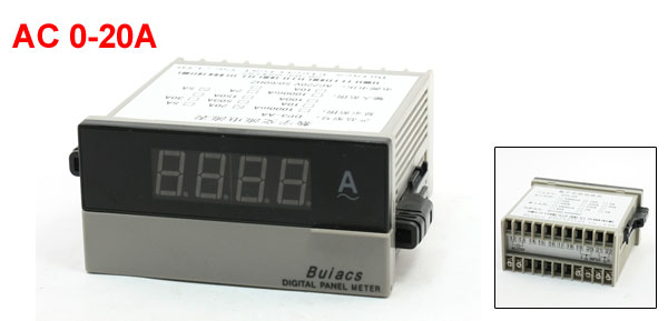 DetailsRed LED 3 1/2 Digital Display Panel Amplifier Meter Ammeter AC 0-20A  Product Name 3 1/2 Digital AC Ammeter Model DP3-AA/20A Power Supply AC 220V ± 10% 50/60Hz DisplayMethod 7 Segment LED Display Input AC 0-20A Display Range 0-19.99 Sampling Speed 2.5 Times/Sec. Resolution 10mA Display Accuracy ± 0.5%F.S±2 Digit Operating Environment 0 - 50C°, 35% - 85%RH Total Size 112 x 96 x 48mm/ 4.4" x 3.8" x 1.9" (L*W*T) Casing Material Plastic Display Color Red Weight 262g Package Content 1 x 3 1/2 Digital AC Ammeter