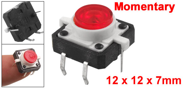 Red LED Light Momentary Tactile Tact Push Button Switch 12 x 12mm x 7mm 4Pin DIP