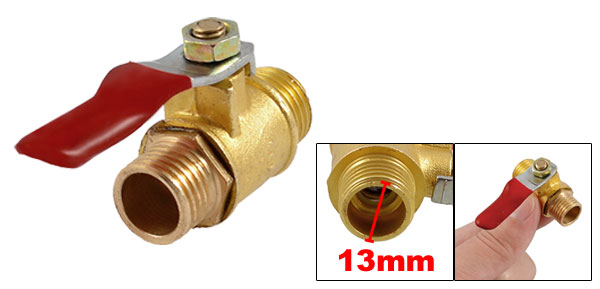 Red Lever Handle 13mm Male Thread to 12mm Male Air Compressor Ball Valve