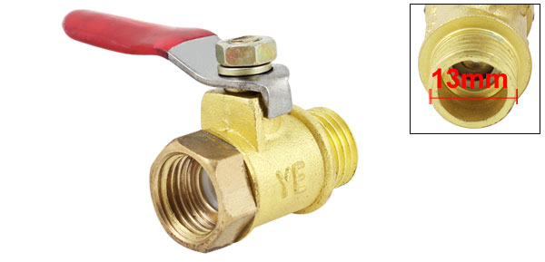 Red Lever Handle 13mm Male to 11mm Female Thread Brass Gas Ball Valve