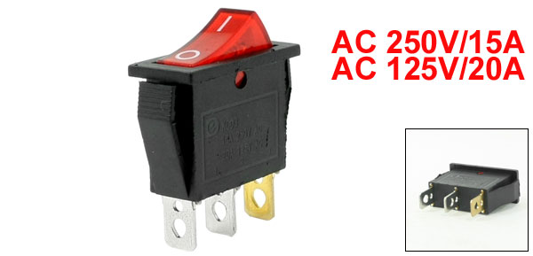 Red Light 3 Terminals Boat Rocker Switch AC 250V/15A AC 125V/20A