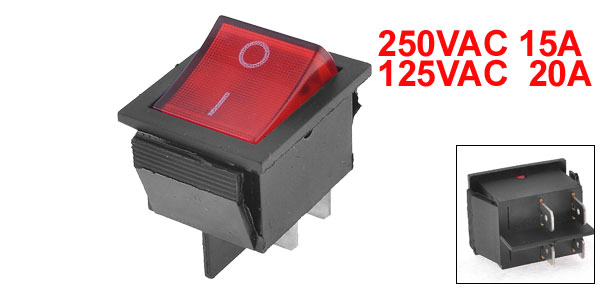 Red Light 4 Pin DPST ON/OFF Snap in Boat Rocker Switch 15A 250V AC