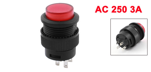 Red Light 4Pin Black Momentary Pushbutton Switch SPST AC250V 3A