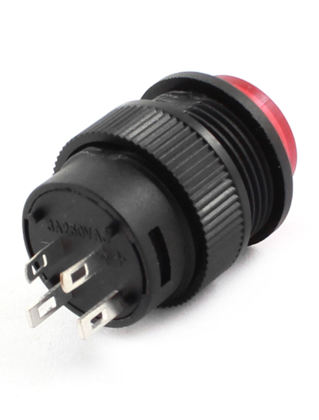 Item Name Push Button Switch Action Type Momentary Contact Type SPST Working Voltage Current AC 250 3A Light Color Red Button Diameter 13mm/0.51" Mounting Diameter 15mm/0.59" Total Size 24 x 18mm/0.94" x 0.71"(H* Max.D) External Material Plastic, Metal Color Red, Black Net Weight 6g Package Content 1 x Push Button Switches - Reviews