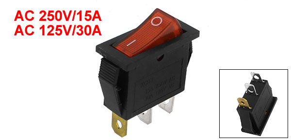 Red Light ON-OFF I/O SPST Snap in Rocker Switch 3 Pin AC 250V 15A 125V 30A