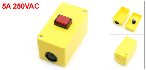 Product Name Push Button Station Action Type Latching Action Contact Type SPDT 1NC 1NO Ith 5A 220VAC Working Voltage & Current 5A 250VAC Light Voltage 24V Light Color Green Button Size 2.1 x 1.5cm/0.8" x 0.59"(L*W) Overall Size 9 x 6 x 5cm/3.5" x 2.4" x 2"(L*W*H) Wire Hole Dia 22mm/0.87" Mounting Hole Dia 4.3mm/0.17" Mount Hole Distance 60mm x 35mm/2.4" x 1.4"(L*W) Material Plastic, Metal Color Red, Black, Yellow Net Weight 64g Package Content 1 x Push Button Station - Reviews