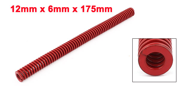 Product Name Die Spring Load Type Medium Load Color Red Rod Diameter 6mm/0.24" Hole Diameter 12mm/0.47" Free Length 175mm/6.89" Material Alloy Steel Weight 50g Package Content 1 x Die Spring - Reviews