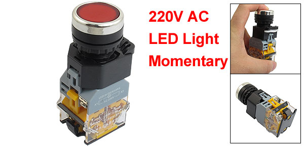 Product Name Push Button Switch Contact Type 1NO 1NC (DPST) Action Type Momentary Ith 10A Ui 380V LED Light Voltage 220V Terminal Quantity 6 Panel Cutout Diameter 22mm / 0.87"(7/8") Fit Panel Thickness (Adjustable) Max 5.5mm / 0.22" Button Diameter 2.4cm / 0.9" Total Size(Approx) 3.7 x 2.9 x 8.3cm / 1.47" x 1.2" x 3.3" (L*W*H) External Material Plastic, Metal Button Color Red Weight 58g Package Content 1 x Push Button Switch - Reviews