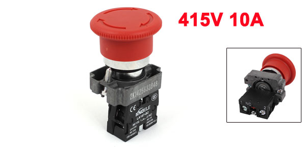 Red Mushroom Emergency Stop Push Button Switch Latching N/C SPST 415V 10A