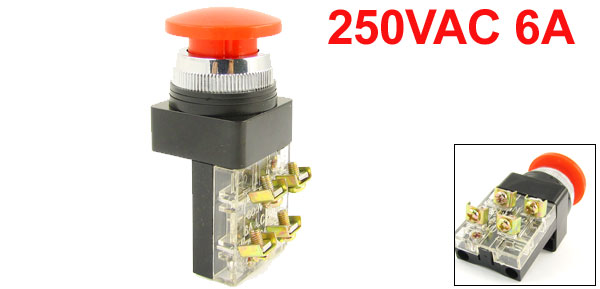 Red Mushroom Head Momentary Actuator SPST Push Button Switch 250V AC 6Amp