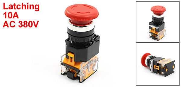 Red Mushroom Latching Emergency Stop Push Button Switch 380VAC 10A DPST