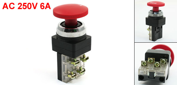 Red Mushroom Self-Locking Push Button Pushbutton Switch 250VAC 6A NO NC