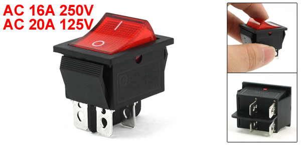 Terminals 4 Pins Position On-Off Lamp Color Red Rated Voltage AC 16A 250V, AC 20A 125V Overall Size 31 x 25 x 35mm / 1.2" x 1" x 1.4" (L*W*H) Mounting Size 27 x 21mm / 1.1" x 0.8" (L*W) Color Black, Red Material Plastic, Metal Total Weight 12g Package Content 1 x Rocker Switches - Reviews