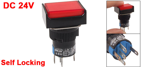 Product Name Push Button Switch Action Type Self Locking Contact Type 1 NO, 1NC Rating Voltage AC 3A / 250V DC 5A / 30V Terminals Quanlity 5 Pins Light Voltage DC 24V Mounting Hole Diameter 15.5mm / 0.6" Button Size 21 x 15mm / 0.83" x 0.6"(L*W) Terminals Pitch 5mm / 0.2" Overall Size 23 x 18 x 39mm / 0.9" x 0.71" x 1.5"(L*W*H) Material Plastic & Metal Color Red & Black Weight 8g Package Content 1 x Push Button Switch - Reviews