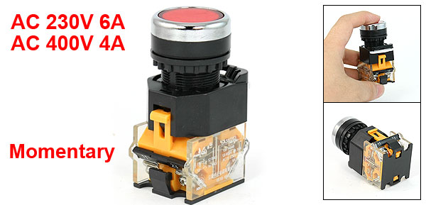 Product Name Push Button Switch Contact Type 1NO 1NC (DPST) Action Type Momentary Ith 10A Ui 400V Rated Power Voltage AC 230V 6A, AC 400V 4A Terminal Quantity 4 Panel Cutout Diameter 22mm / 0.9"(7/8") Fit Panel Max. Thickness 6mm / 0.24" Button Diameter 2.4cm / 0.9" Total Size(Approx) 3.8 x 2.9 x 6.8cm / 1.5" x 1.2" x 2.7" (L*W*H) External Material Plastic, Metal Button Color Red Net Weight 48g Package Content 1 x Push Button Switch - Reviews