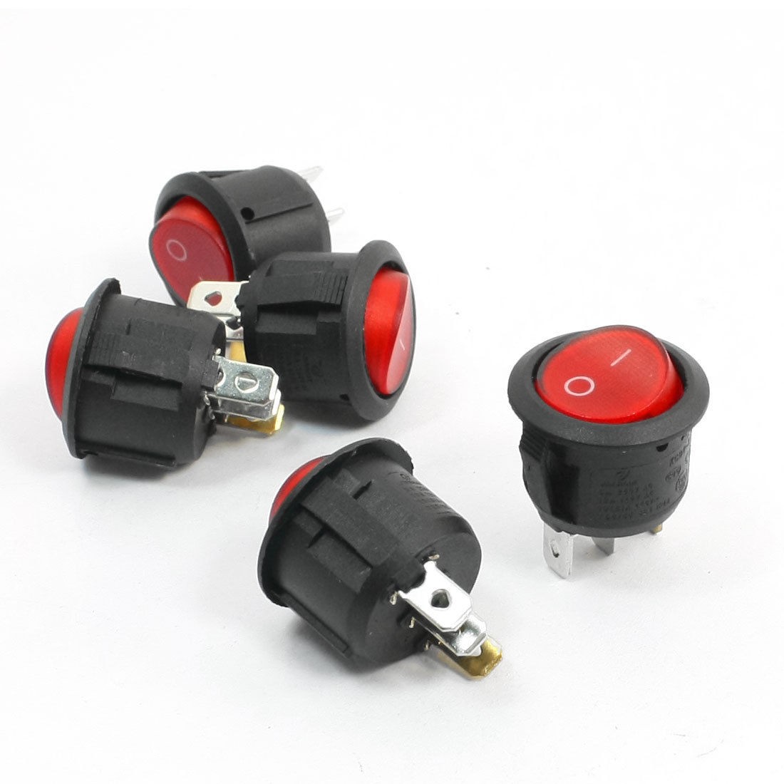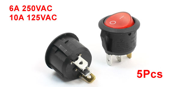 Red Pilot Lamp 6A 250VAC 10A 125VAC 2Position SPST ON/OFF Rocker Switches 5 Pcs